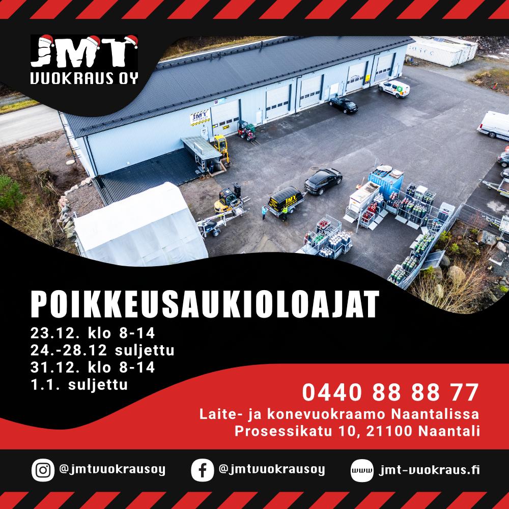 JMT-Vuokraus Oy on vuonna 2008 perustettu konevuokraamo Turun liepeiltä, saaristoreitin vierestä Naantalista. Toimitamme koneet ja laitteet kaikkialle Suomeen.